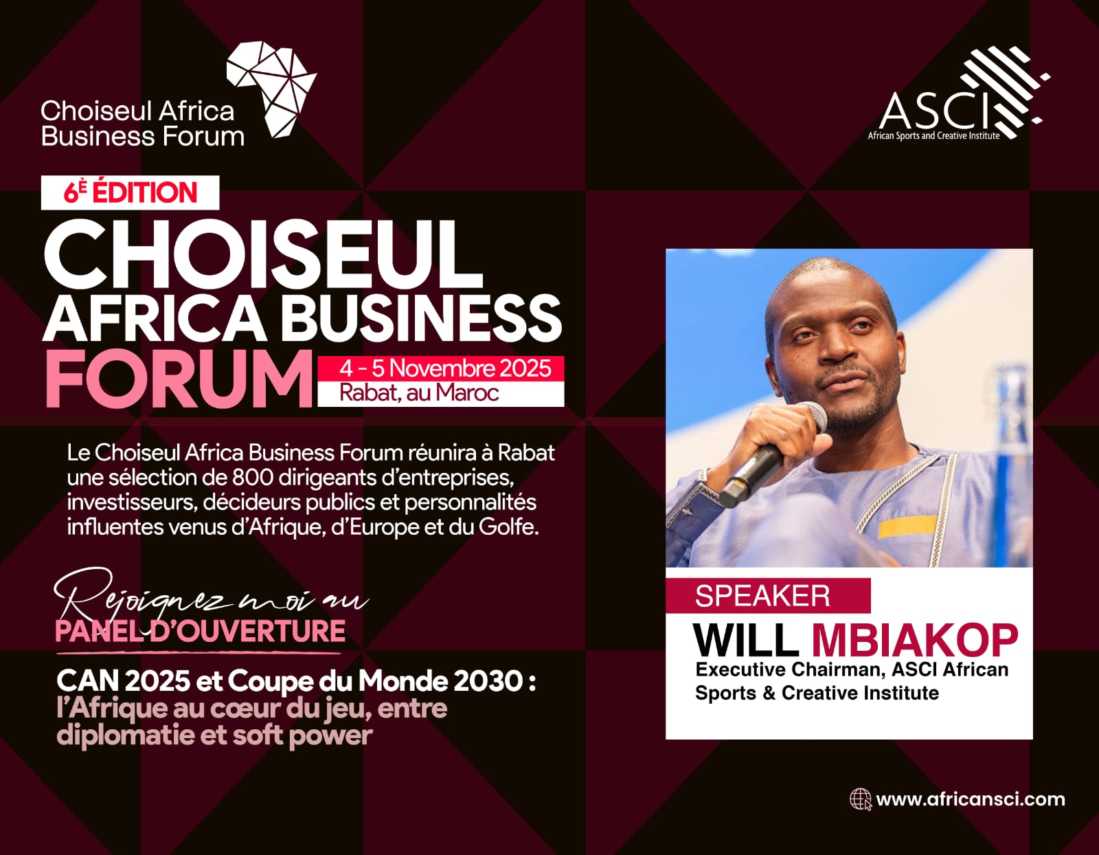 This is a ground-breaking team effort led by Will Mbiakop and a panel of esteemed experts that includes N. Okonjo-Iweala (WTO), T. Thiam (Finance Icon), M. Diop (IFC), F. Samoura (FIFA), R. Rioux (AFD), H. El Habti (UM6P), M. Ujiri (NBA), V. Songwe (UNECA), G. Ramos (UNESCO), and football legend D. Drogba.